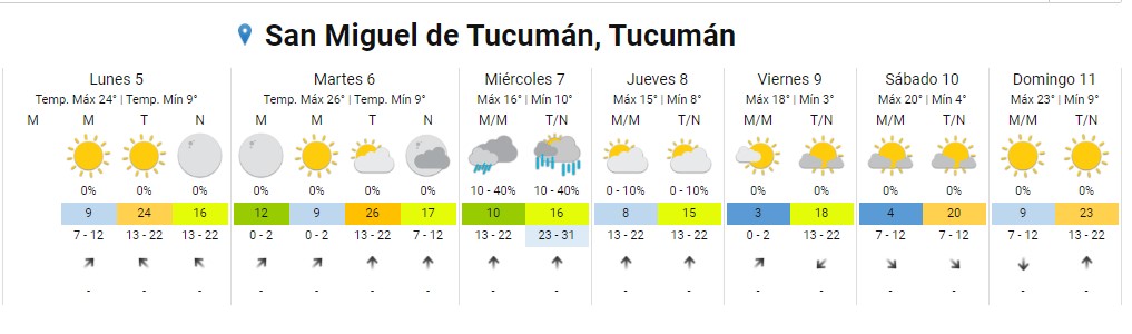 El martes será el día más cálido de la semana, con una temperatura máxima de 26 grados. Sin embargo, el miércoles, un frente frío afectará la región, provocando precipitaciones aisladas en Tucumán alrededor del mediodía. Este cambio climático traerá de vuelta la nieve a los valles, comenzando desde la tarde-noche del miércoles y posiblemente extendiéndose hasta el jueves.