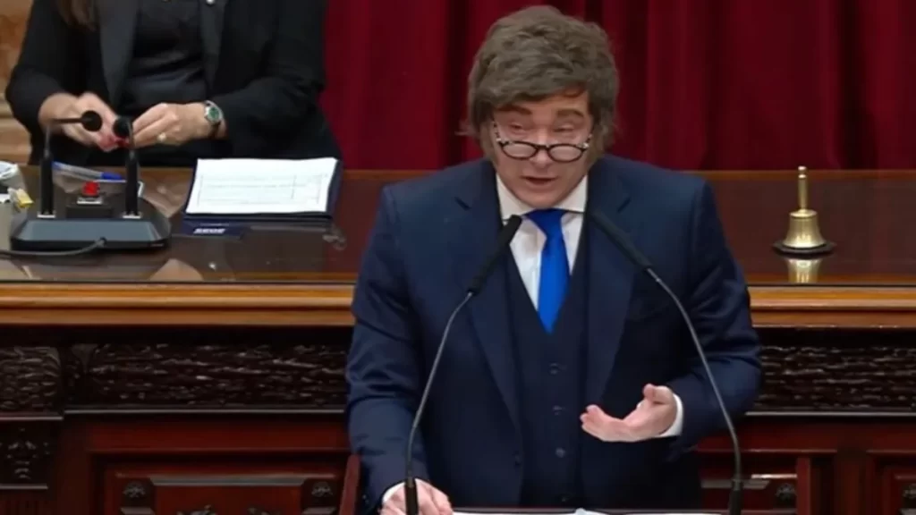 “Estamos saliendo del pozo. Y lo que es más importante, todo esto lo logramos sin expropiaciones ni default, ni hiperinflaciones que hubieran llevado a la pobreza al 90 % de los argentinos. Todo esto fue tan solo el resultado de encarar con seriedad la gestión del Estado, respetando los derechos de propiedad y devolviéndole la libertad a los argentinos”, destacó Milei durante su discurso en el Congreso.