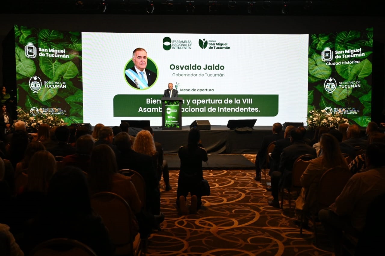 Jaldo destacó la realización del encuentro en la provincia y expresó: “quiero destacar el hecho que hoy estamos viviendo en Tucumán, evento que no se da por casualidad, que no se elige ni se designa bajo ningún punto de vista ni de manera caprichosa. Por eso la hemos escuchado atentamente a la señora intendenta de San Miguel de Tucumán, Rosana Chahla, que San Miguel de Tucumán ha tenido que cumplimentar determinados requisitos para que esta octava asamblea de la red de intendentes de la República Argentina, en una problemática tan importante como es cuidar el medio ambiente, se realice en nuestra querida provincia de Tucumán y, fundamentalmente, en la ciudad histórica. Esto es lo que tienen que saber los periodistas y transmitir a la sociedad. Este evento hoy se está organizando porque San Miguel de Tucumán cumple los requisitos y califica para la realización de estos eventos”.