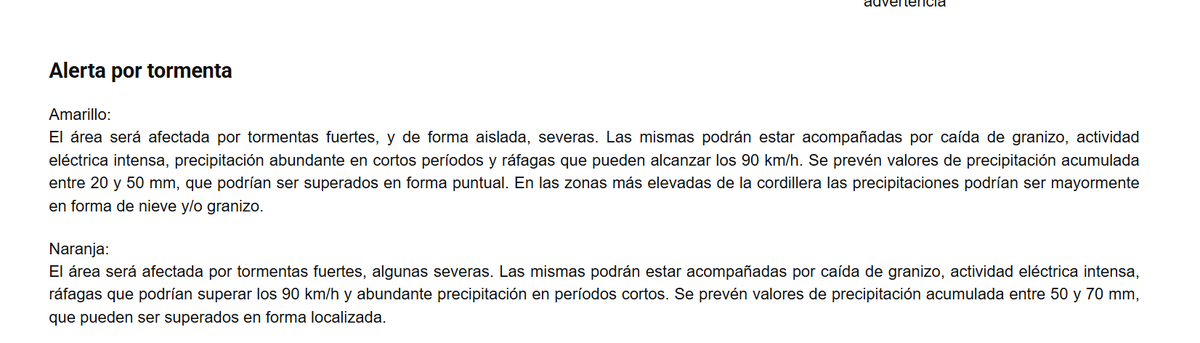 El Servicio Meteorológico Nacional anticipa una jornada con alerta amarillo para la madrugada, mañana y noche de hoy, y alerta naranja durante la tarde