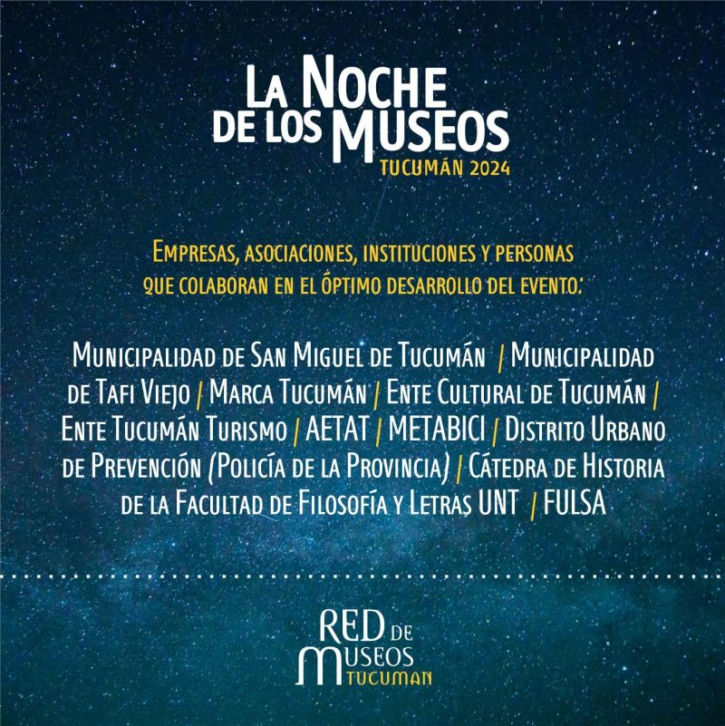 Este año, la comunidad está invitada a disfrutar de una noche llena de arte y cultura, con actividades para todos los gustos y la oportunidad de conocer la historia y el patrimonio de Tucumán. “La Noche de los Museos” promete ser una celebración inolvidable que reafirma el compromiso de la provincia con la cultura y la educación.